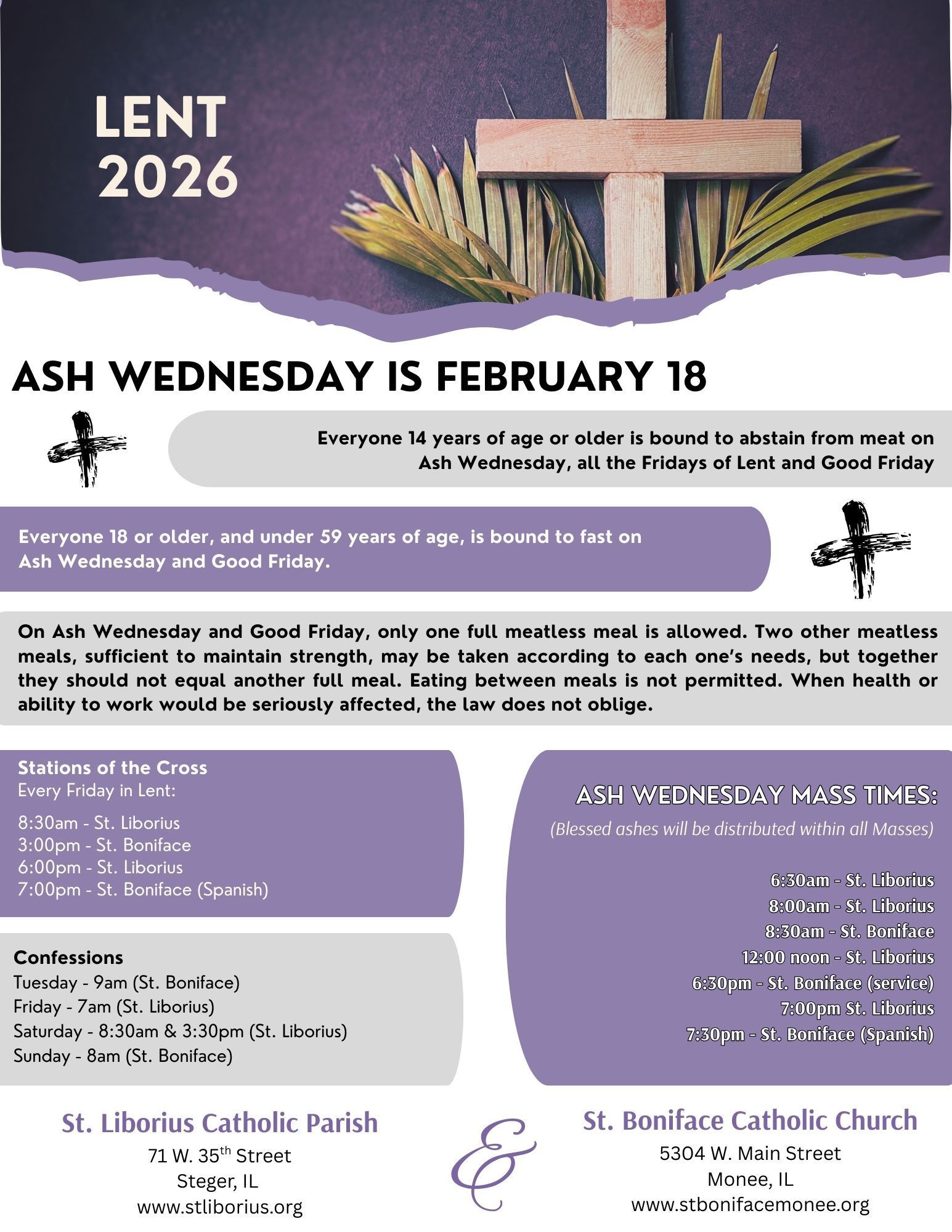 5:00pm (St. Liborius) beginning 2/22/26)
